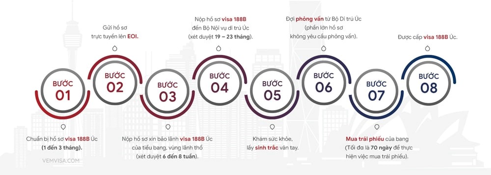 • Bước 3: Nộp hồ sơ xin bảo lãnh visa 188B Úc của tiểu bang, vùng lãnh thổ bạn muốn định cư (xét duyệt 6 đến 8 tuần).